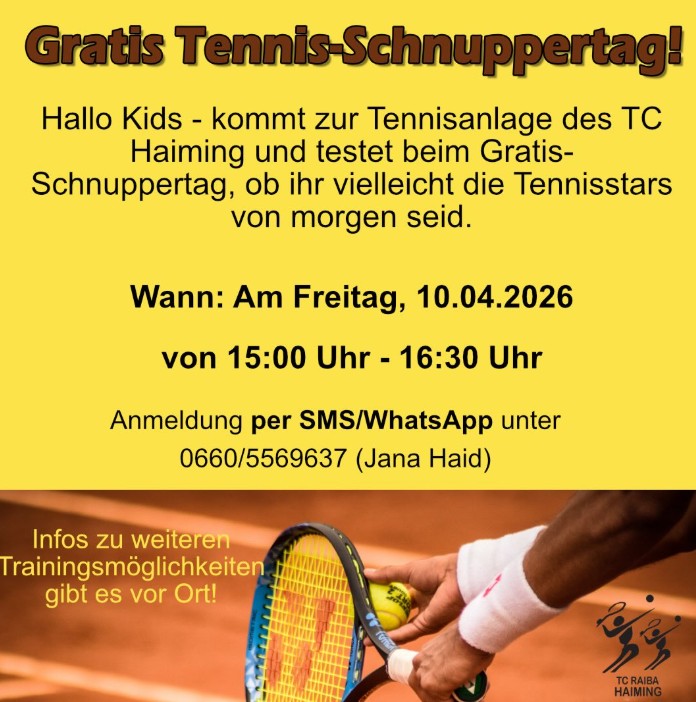 ab Mittwoch, dem 08. April, sind unsere Plätze wieder für euch geöffnet. Auch in diesem Jahr bieten wir erneut unser beliebtes Schnuppertraining an – die perfekte Gelegenheit, für Kids, den Tennissport kennenzulernen.